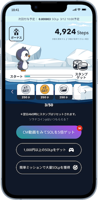 毎日歩くだけでソラナコインが貯まる
